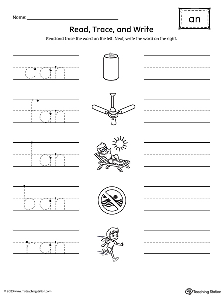 Boost students reading and writing skills using this -AN word family picture and word match worksheet. This activity is ideal for children in preschool and kindergarten who are learning to blend letter sounds to read simple CVC and CCVC words.