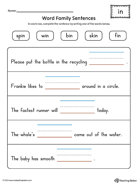 Use this printable IN Word Family Image Poster to help your students read and associate the meaning of these simple words ending in -IN.