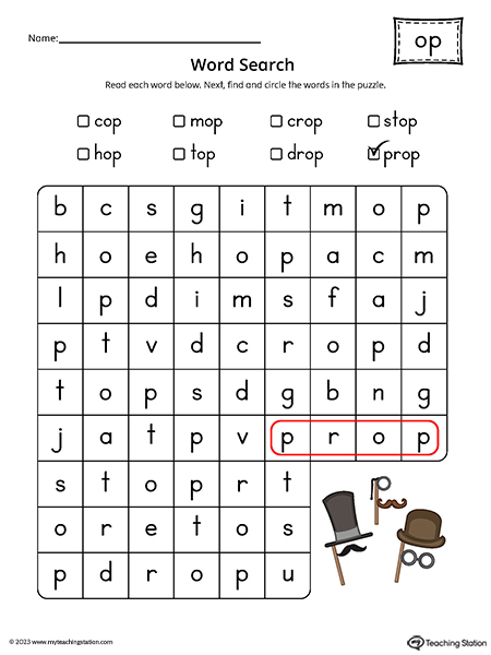 In this early literacy worksheet, children practice reading and identifying words that share a pattern, words ending in -OP. In each section, students will read the OP words and circle the one that matches the picture.
