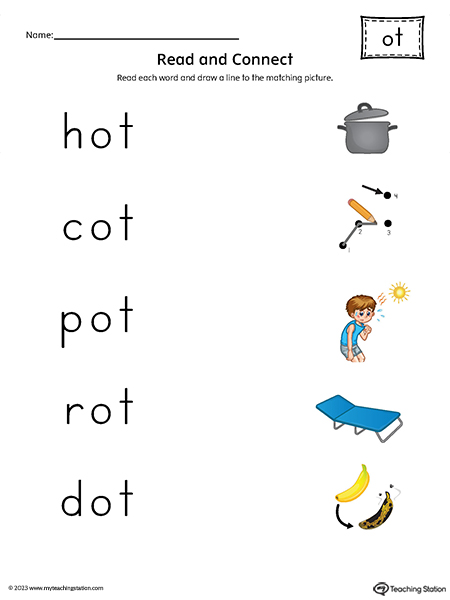 The OT Word Family printable PDF is an excellent activity for children to practice reading, spelling, and writing basic words.