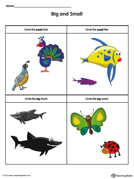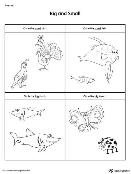 Use this worksheet with a group or individuals to build on the basic concepts of big and small by identifying which animal is bigger or smaller in each box.